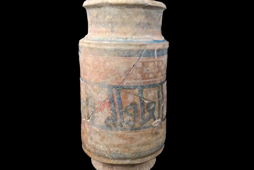 The Islamic script on the jar reads as 'The Treatment' as you may expect from a jar that once contained medicinal drugs. It may have been used for this purpose in Eastbourne too, but more likely it was picked up as a curiosity by a merchant or trader in the distant past.