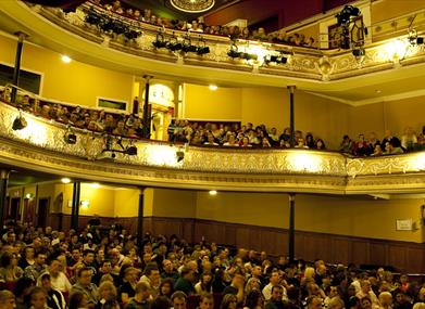 The Devonshire Park Theatre is a Grade II listed building designed by Henry Currey, built in 1884 and further improved by celebrated theatre architect Frank Matcham in 1903. It is one of the best examples of small Victorian Theatre in the country, with an ornate interior featuring decorative plaster work with scrolls and caryatids by Schmidt of Holloway.