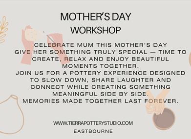 Step into a warm, welcoming space and spend a few creative hours celebrating motherhood. In this relaxed and inspiring workshop, you'll shape, decorate, and personalise ceramic pieces — perfect as heartfelt gifts for your mum or as a beautiful keepsake for yourself. With calming music in the background and plenty of time to enjoy the process, it's a wonderful way to slow down, connect, and make something meaningful.